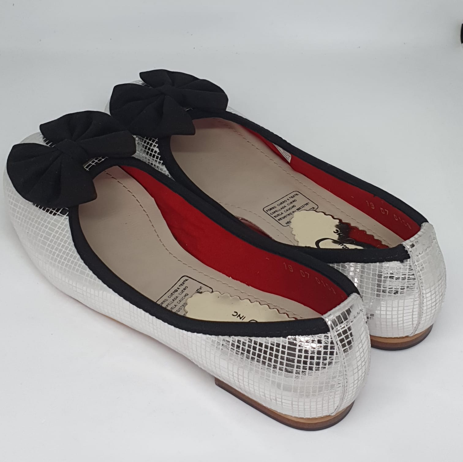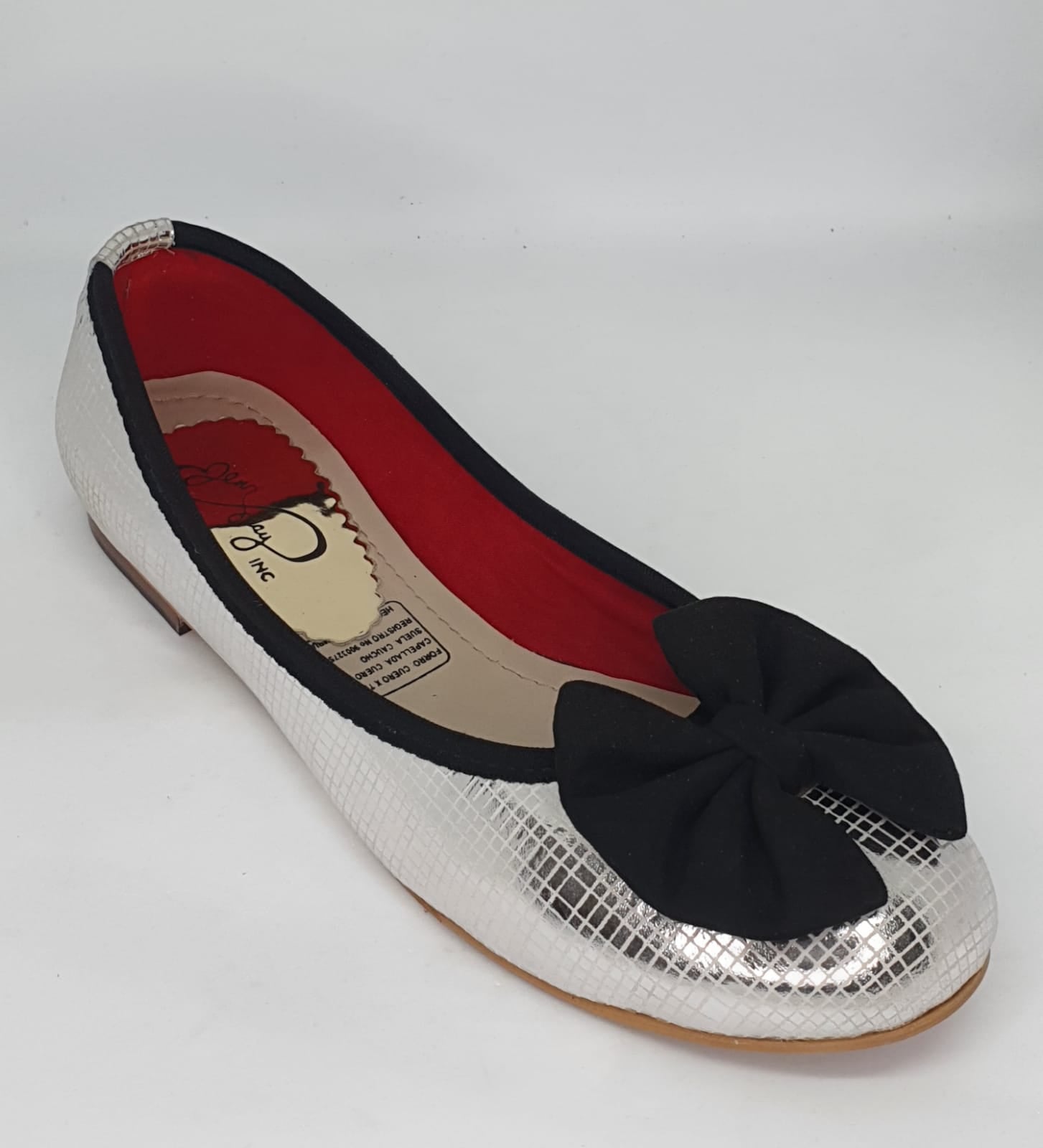Diseño escamado de cuero folia color plateada con lazo color negro en capellada.